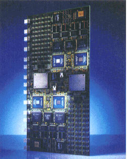 Prozessorboard mit vier PowerPC-Prozessoren (320 MFLOPS Spitzenleistung) und acht T805-Transputern