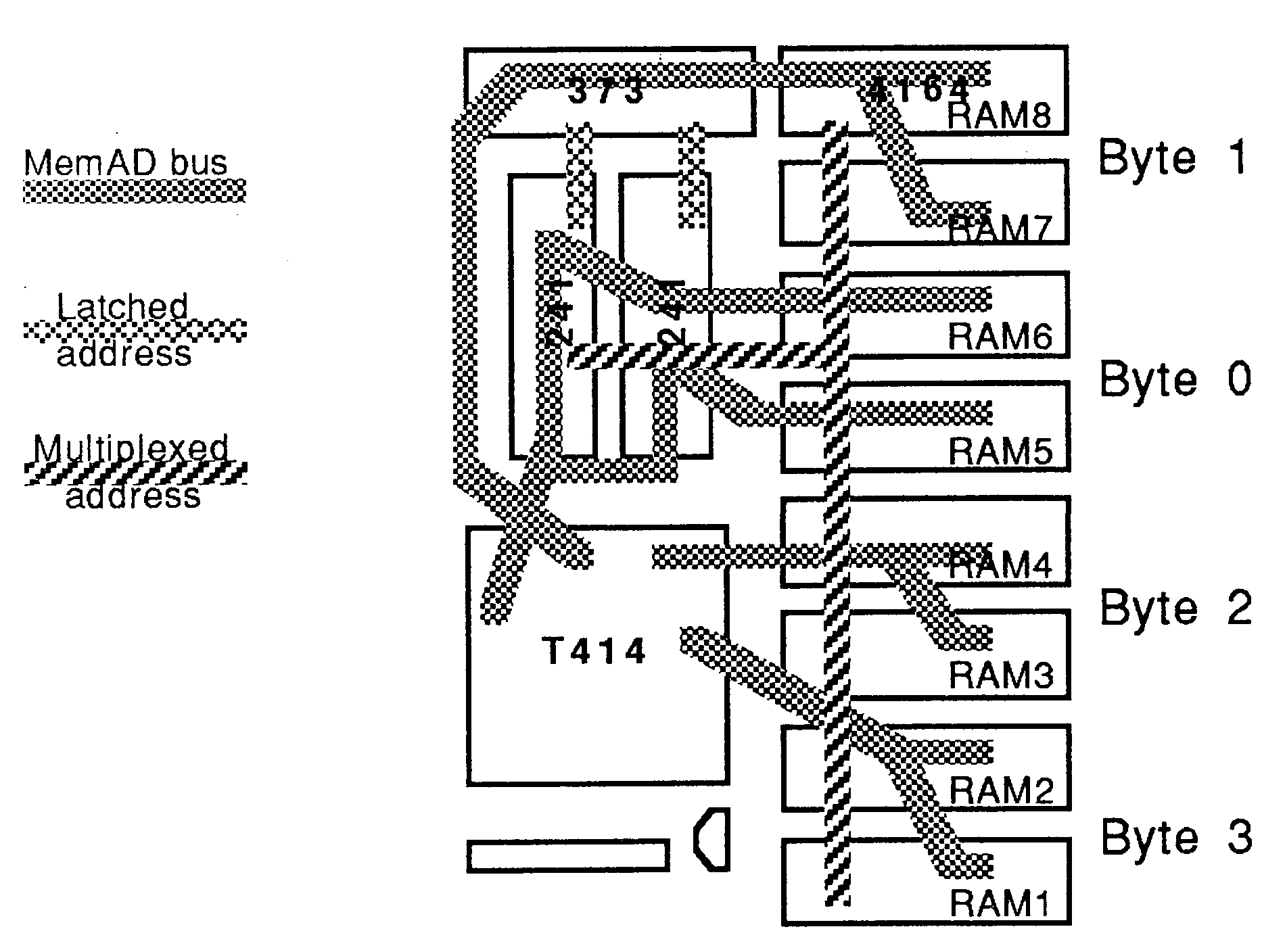 ∙ moving the 373 to beyond the address multiplexors, which also had the effect of putting Byte 1 of the RAMs beyond Byte 0.