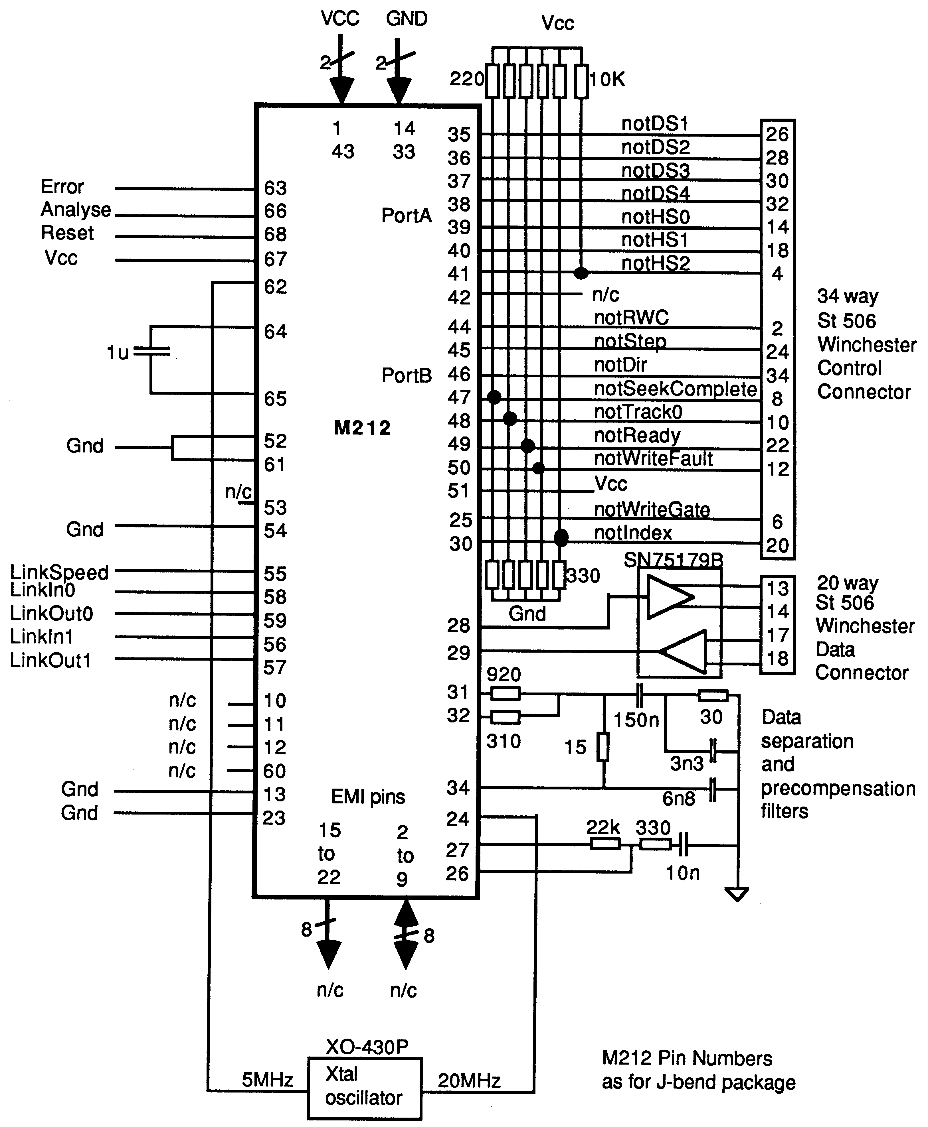 The IMS C012 is used on the IMS B004 and IMS B008 development boards for the IBM PC. In order to interface to the IMS M212, exactly the same circuit as on the IMS B004 was used but with the address decoding modified to select the link adaptor at a different I/O address. This allows the disks accessed via this link adaptor to be used at the same time as the transputer development system (TDS) running on an IMS B004.